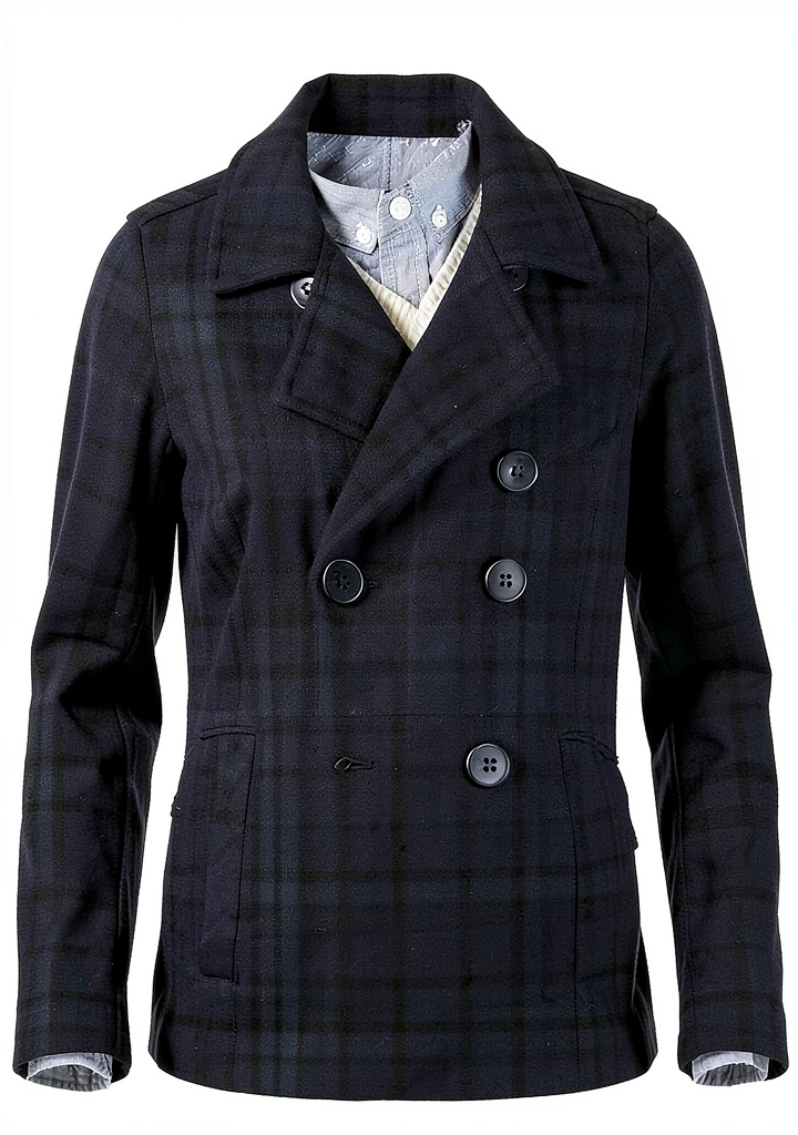 - Double-breasted design with stylish accents